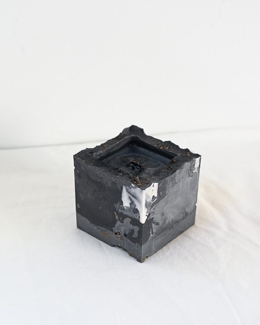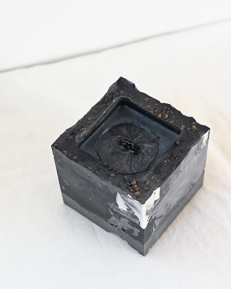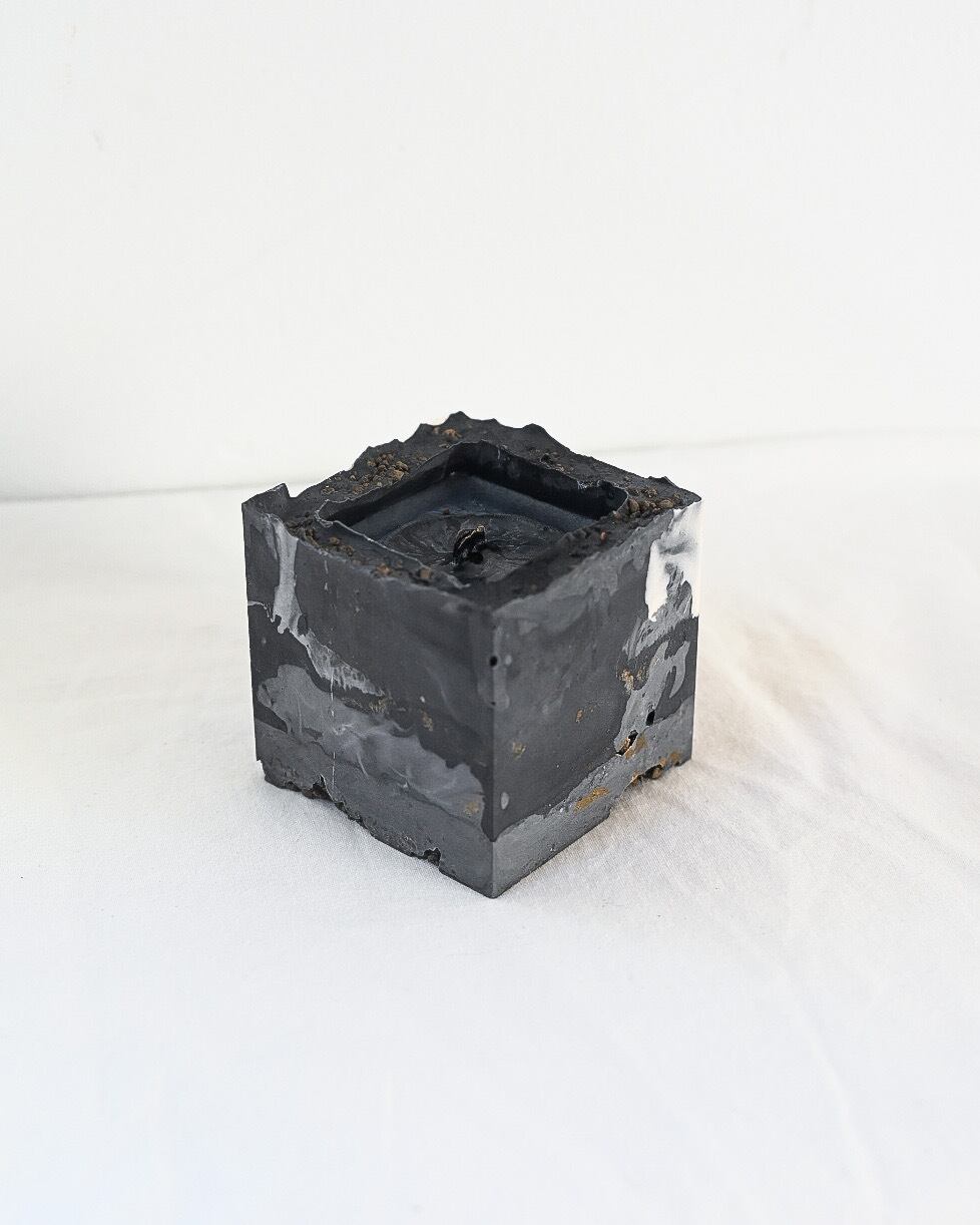 四角形、ダークカラー、炭、土、泥、混沌、循環というシンボルで構成されているエネルギッシュなキャンドルで、人々への労りを込めて制作しています。